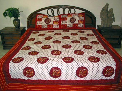 Buy 3p Set White Red Block Print Cotton Bedspread Tapestry Throw Bed Cover Indian Bedding Now