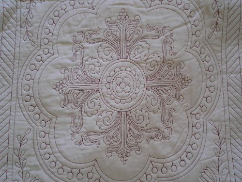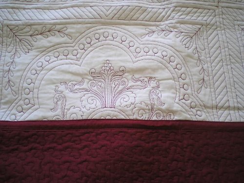 Buy 3pc cotton fully quilted emb' bed cover set Beige / Burgundy, King Now