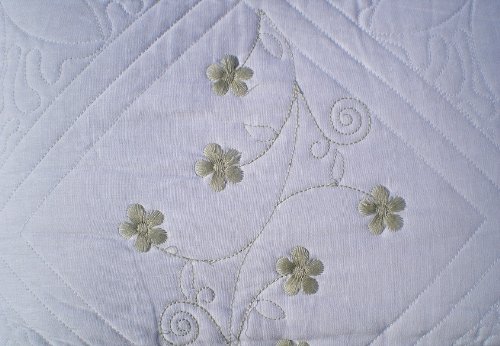 Brand New 3pcs 100% cotton for both side fully quilted embrodiery bedspread set QUEEN White / Sage Green