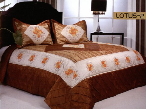 Buy Arya Lotus 2 Queen/King Satin Bedspread Quilt 3 Pieces Set AR204Q Now