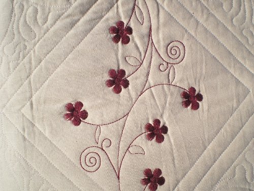 Buy 3pc Beige / Burgundy 100% Cotton Fully Quilted Embroidery Bed Cover Bedspread Quilts Set Queen Now